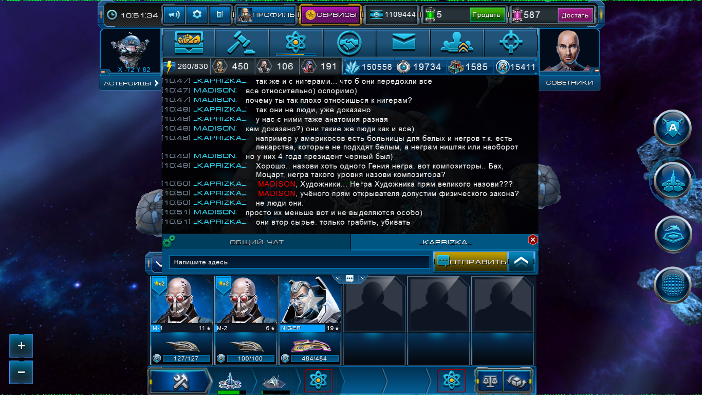 Во всём цивилизованном интернете, любые сообщения унижающие людей по расовым или национальным признакам наказываются максимально строго. Данная игра не исключение и за такого рода высказывания можно получить и блок аккаунта.