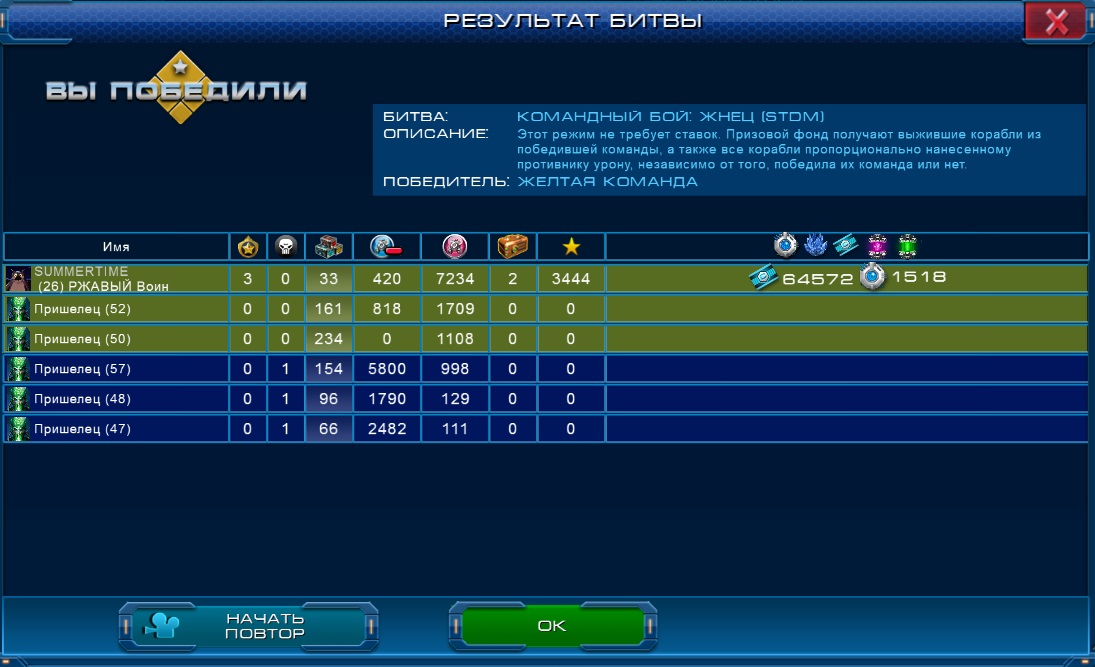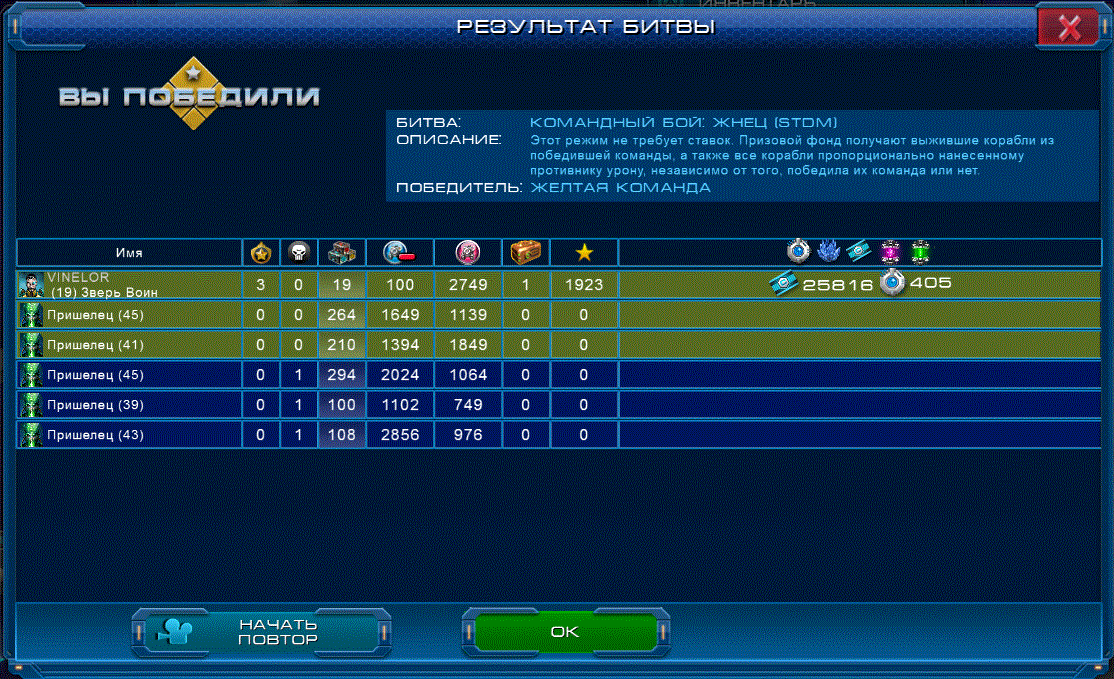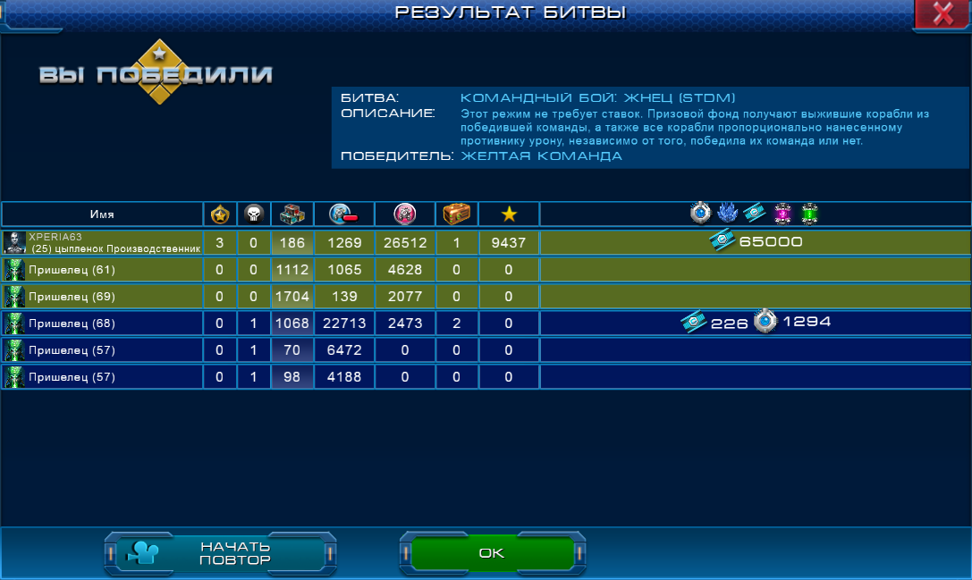 *Некоторые подробности о режиме "Жнец": при попадании в бой “Жнец” первый раз, ваш Капитан получает так называемый “виртуальный уровень” - в первом “Жнеце” он равен уровню капитана, но с каждой последующей победой растет на 2 уровня, затягивая в последующие бои пришельцев равных по виртуальному уровню (+/- 5). В случае поражения виртуальный уровень понижается, также он понижается на 1% каждые 1мин 48сек. Полностью возвращается к начальному значению за 3 часа. Поэтому, чтобы достигнуть максимального разлета в уровнях с противником в жнеце, необходимо постоянно сражаться и побеждать. Максимальный уровень пришельцев - 70.