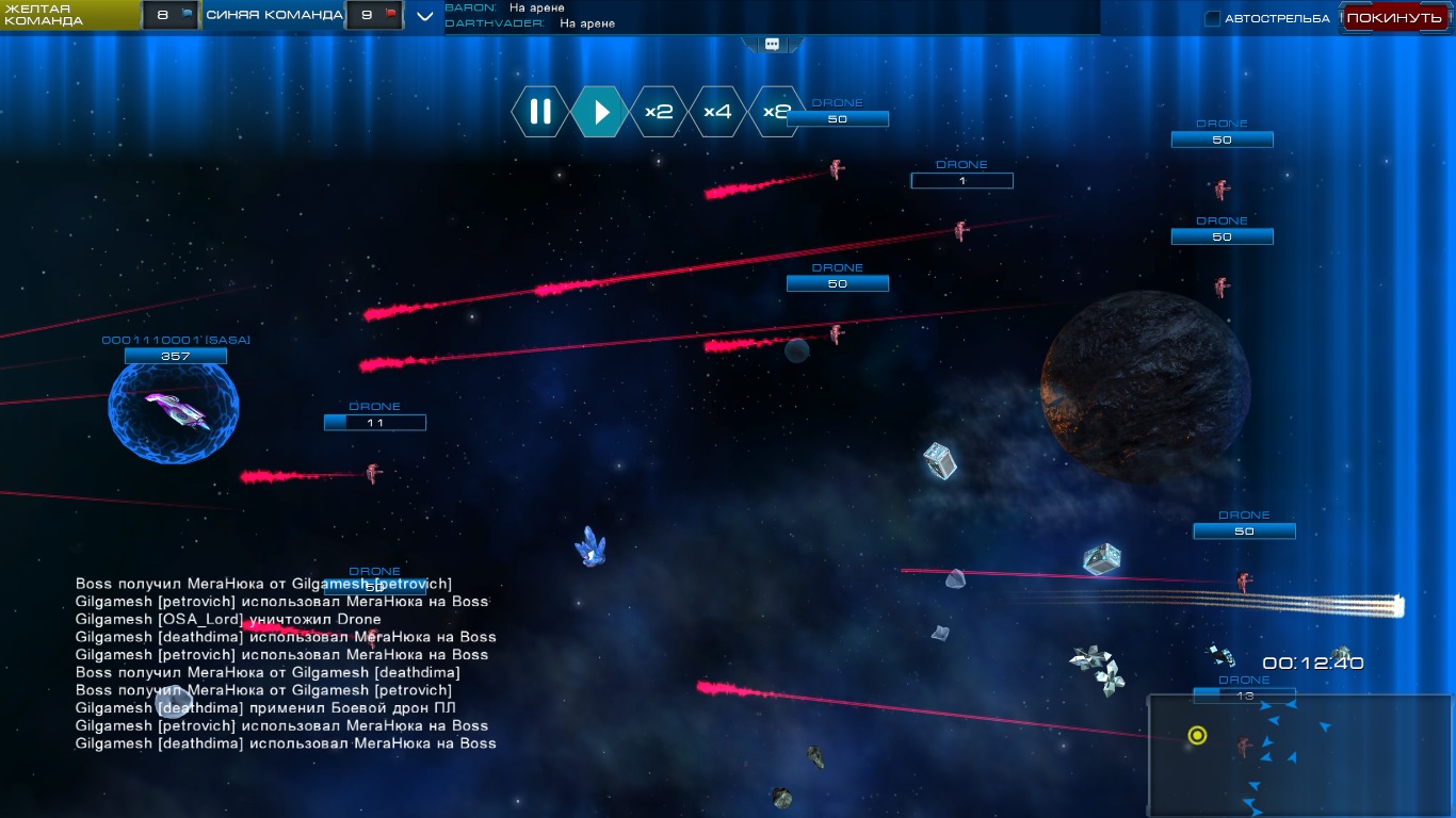 Некоторых из союзников может потрепать босс и поэтому настоятельно рекомендую восстанавливать уровень хп у них ремонтным лучем. Силовые преграды используем, когда к Вам направлены залпы от босса, а во время кд преград можно использовать истребители.